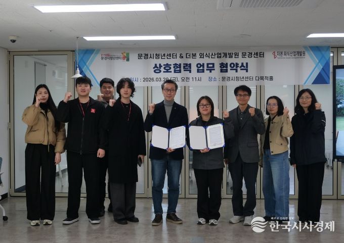 한국시사경제 이정이 기자 | 문경시청년센터는 2026년 3월 20일 오전 11시, 더본 외식산업개발원 문경센터와 지역 청년의 외식 산업 활성화 및 프로그램 공동 개발 운영 등을 위한 업무협약(MOU)을 체결했다고 밝혔다.