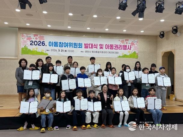 한국시사경제 문화팀 | 광양시는 지난 3월 21일 광양시 육아종합지원센터 3층 대강당에서 '2026년 광양시 아동참여위원회 발대식 및 오리엔테이션'을 열었다고 밝혔다.