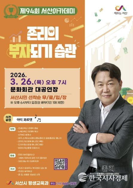 한국시사경제 충남취재본부 | 충남 서산시는 ‘존리의 부자학교’ 존 리 대표를 초청해 제94회 서산아카데미를 개최한다고 밝혔다.