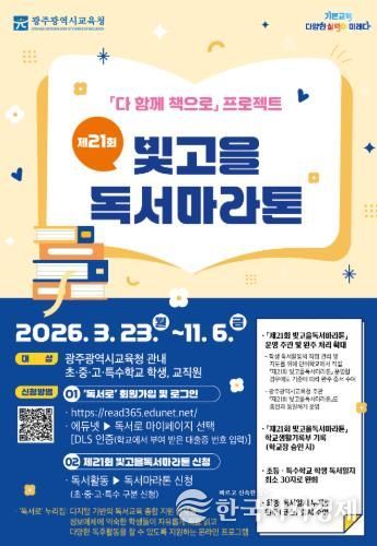 한국시사경제 광주취재본부 | 광주시교육청은 ‘다 함께 책으로’ 프로젝트 실천과 매일 독서하는 학교 문화를 조성하기 위해 오는 11월 6일까지 ‘제21회 빛고을독서마라톤’을 운영한다.