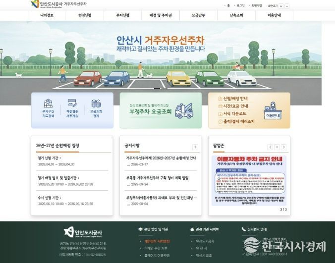 한국시사경제 권충현 기자 | 안산도시공사는 거주자우선주차장 운영 서비스를 전면 개편하고, 내달 1일부터 한 달간 ‘2026년 순환배정’ 신청을 접수한다고 24일 밝혔다.