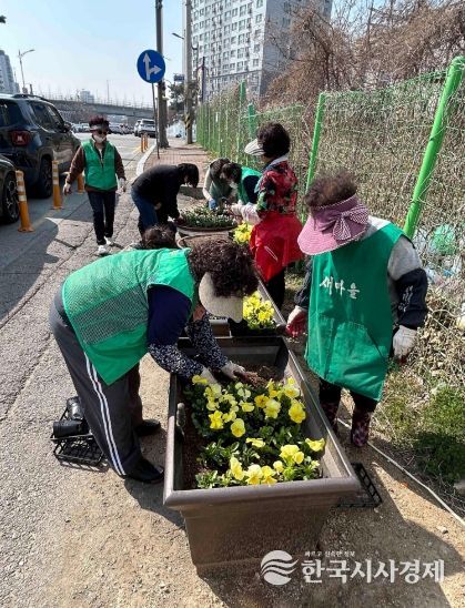 한국시사경제 사회팀 | 평택시 신장2동 행정복지센터는 지난 23일 새마을부녀회 회원과 동 직원 등 30여 명이 참여한 가운데, 관내 주요 도로변 및 도시재생구역 일대에 봄꽃 심기 작업을 했다고 밝혔다.