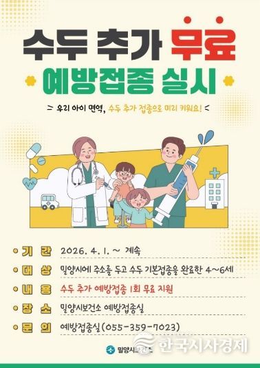 한국시사경제 의료보건팀 | 경남 밀양시는 봄철 수두 유행에 대응해 아동 건강 보호를 위해 전국 최초로 수두 추가 예방접종 사업을 시행한다고 25일 밝혔다.