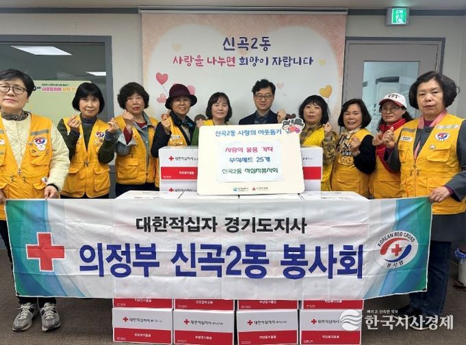 한국시사경제 경기북부취재본부 | 의정부시 신곡2동주민센터는 3월 24일 신곡2동 적십자봉사회가 취약계층을 위해 라면, 김, 참치 통조림 등 9종으로 구성된 부식세트 25개를 전달했다고 밝혔다.
