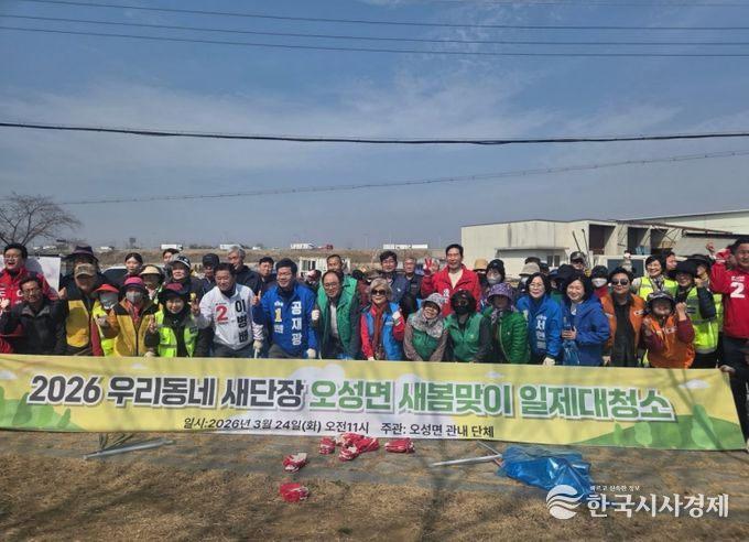 한국시사경제 사회팀 | 평택시 오성면은 지난 24일 오성강변로 일대에서 ‘우리동네 새단장’캠페인의 일환으로 새봄맞이 일제대청소를 진행했다.
