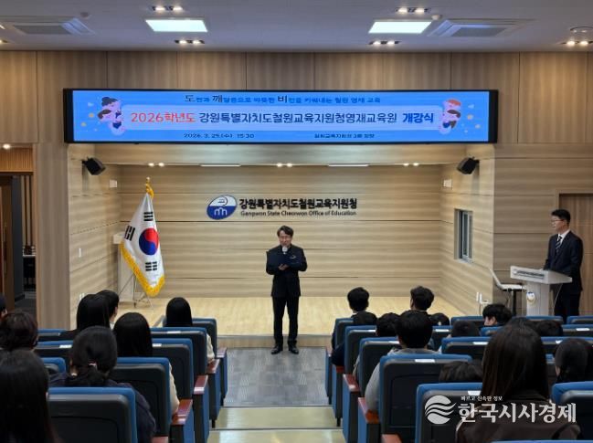 한국시사경제 문화팀 | 강원특별자치도철원교육지원청은 3월 25일 오후 3시 30분, 철원교육지원청 3층 강당에서 학생과 학부모, 지도교사 등 100여 명이 참석한 가운데 ‘2026학년도 강원특별자치도철원교육지원청영재교육원 개강식’을 개최했다.