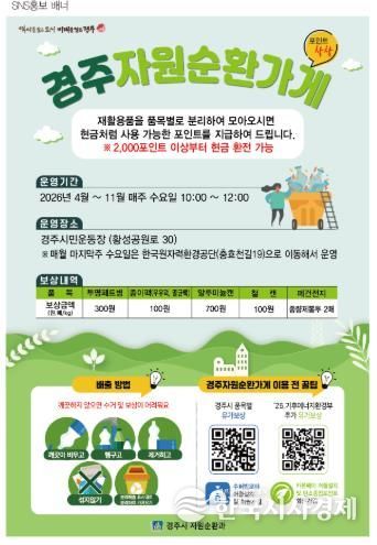 한국시사경제 경북취재본부 | 경주시는 재활용품 분리배출 활성화와 자원순환 문화 확산을 위해 ‘자원순환가게’를 운영한다고 26일 밝혔다.