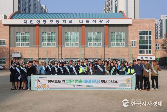 한국시사경제 대전취재본부 | 대전시는 26일 서구 성룡초등학교 일원에서 어린이 교통사고 예방과 안전한 통학환경 조성을 위해 ‘어린이 보호구역 일단멈춤, 아이 먼저 보내주세요’ 교통안전 캠페인을 실시했다.