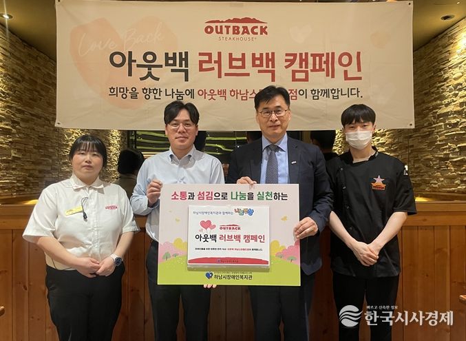한국시사경제 문화팀 | 하남시장애인복지관은 3월 25일 아웃백 스테이크하우스 하남 스타필드점과 함께 2026년 첫 번째 '아웃백 러브백 캠페인'의 나눔 반상 행사를 성황리에 마쳤다고 밝혔다.