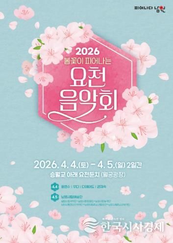 한국시사경제 윤경수 기자 | 남원시는 오는 4월 4일부터 5일까지 요천 둔치 월궁광장에서 ‘2026 봄꽃이 피어나는 요천 음악회’를 개최한다고 밝혔다.