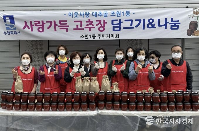 한국시사경제 사회팀 | 수원시 장안구 조원1동 주민자치회는 지난 1일, 복지행정분과 주관으로 ‘사랑가득 고추장 담그기’ 행사를 열고, 직접 담근 고추장을 관내 취약가구 200여 세대에 전달했다.
