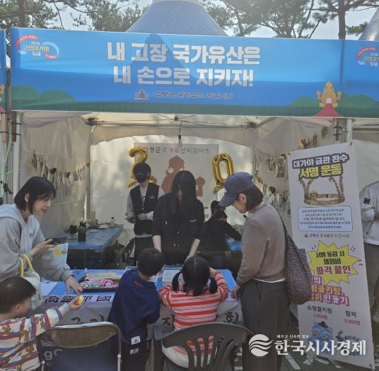 한국시사경제 권충언 기자 | 고령군 국가유산 지킴이회(회장 김민규)가 지난 3월 27일부터 29일까지 3일간 열린 ‘2026 대가야 축제’에서 자원봉사 부스를 운영하며 일제강점기 국외로 반출된 ‘대가야금관’ 환수를 위한 범국민 서명운동을 펼쳐 큰 호응을 얻었다.