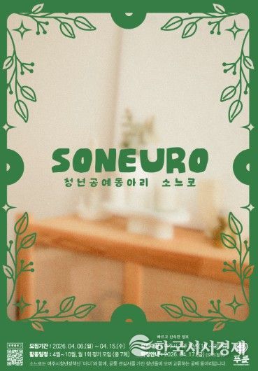 한국시사경제 이정이 기자 | 여주시청년활동지원센터 푸릇은 오는 4월 청년공예동아리 'soneuro(소느로)' 참여자를 모집한다고 밝혔다.