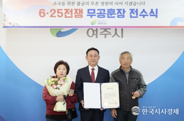 한국시사경제 기동취재팀 | 여주시는 지난 2일 6‧25전쟁 무공훈장 전수식을 개최하고, 故이석만 상사의 공적을 기리며 화랑무공훈장을 유가족에게 전수했다.