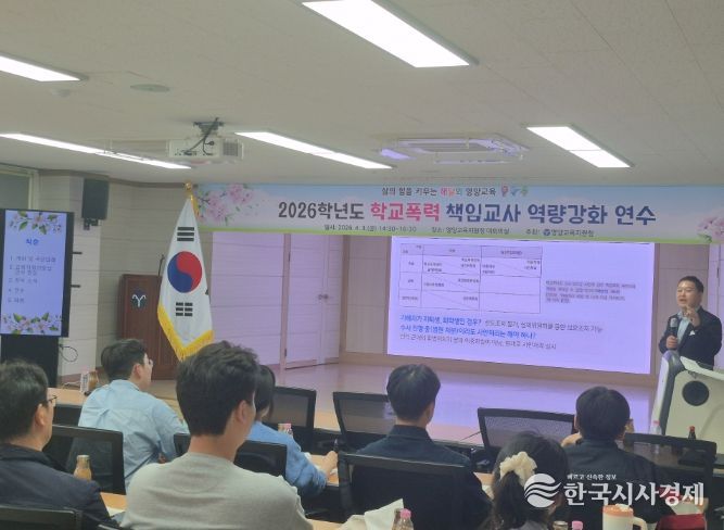 한국시사경제 경북취재본부 | 경상북도영양교육지원청은 4월 3일 영양교육지원청 3층 대회의실에서 관내 초·중·고등학교 학교폭력 책임교사 및 학교폭력 업무 담당자를 대상으로 '2026학년도 학교폭력 책임교사 역량 강화 연수'를 실시했다.