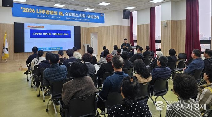 한국시사경제 권충언 기자 | 전남 나주시가 ‘2026 나주방문의 해’를 맞아 숙박업소 친절과 위생 수준을 높이기 위한 통합 교육과 현장 소통을 통해 관광객 만족도를 높이고 ‘다시 찾고 싶은 나주’ 조성에 본격적으로 나섰다.