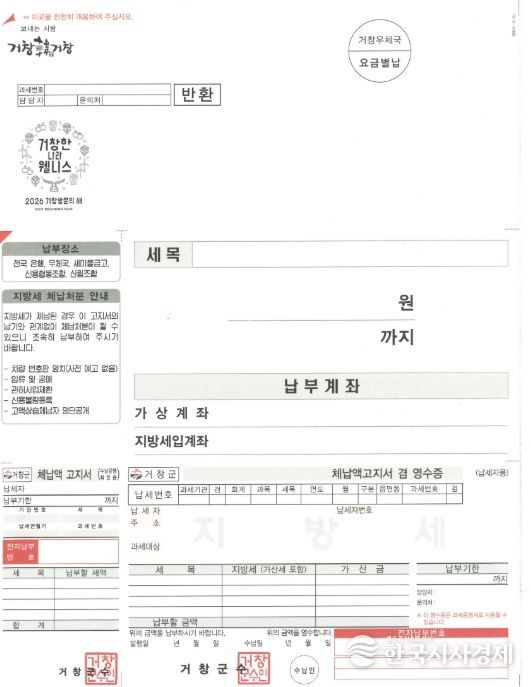 한국시사경제 경남취재본부 | 거창군은 고령층 납세자의 가독성과 납부 편의를 높이기 위해 4월부터 큰글씨 체납고지서를 제작해 발송한다고 밝혔다.