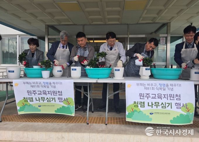 한국시사경제 문화팀 | 강원특별자치도원주교육지원청은 4월 6일 오전 9시 30분, 원주교육지원청 청사 현관 앞에서 제81회 식목일 기념 ‘청렴 나무심기’ 행사를 실시했다.