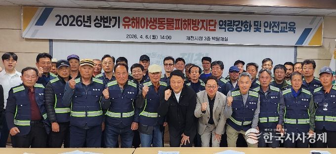 한국시사경제 충북취재본부 | 제천시는 지난 4일 시청 박달재실에서 유해야생동물 피해방지단과 시청, 야생생물관리협회, 국민안전교육센터 관계자 등 40여 명이 참석한 가운데 ‘2026년 유해야생동물 피해방지단 역량 강화 및 안전교육’을 실시했다.