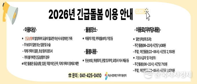 한국시사경제 충남취재본부 | 아산시는 장애인 가족의 돌봄 부담을 경감하고 삶의 질을 향상하기 위해 ‘중증장애인 긴급돌봄서비스’를 추진한다.