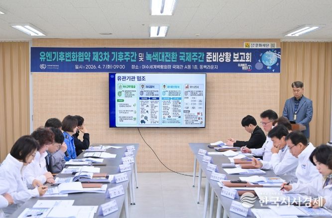 한국시사경제 사회팀 | 여수시가 7일 ‘제3차 유엔기후변화협약(UNFCCC) 기후주간 및 녹색대전환(GX) 국제주간’의 성공적인 개최를 위해 시장 권한대행 주재로 3차 준비상황 보고회를 열고 막바지 점검에 나섰다.