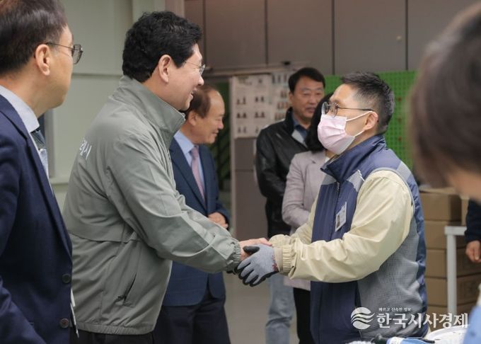 한국시사경제 문화팀 | 이상일 용인특례시장은 10일 오전 처인구 백암면에 있는 장애인직업재활시설인 성만원을 찾아 시설 관계자와 장애인 근로자들을 격려했다.