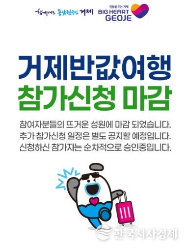 한국시사경제 문화팀 | 거제시에서 관광객 유치 확대와 지역경제 활성화를 위해 ‘2026년 심쿵섬쿵 거제 반값여행’시범사업 사전 신청이 열린 지 3시간도 채 안 되어 마감됐다.
