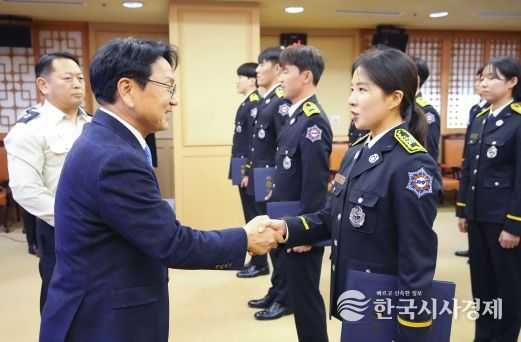 한국시사경제 오영주 기자 | 강기정 광주광역시장은 23일 시청 비즈니스룸에서 광주 안전의 미래를 이끌어갈 신임 소방공무원 49명에 대해 임명장을 수여하고 진심어린 축하를 전했다.