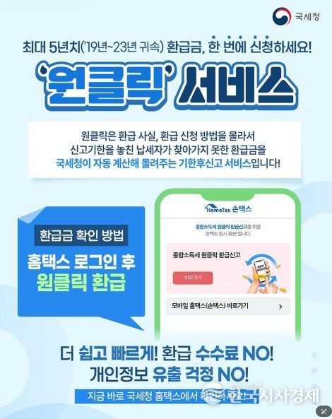 한국시사경제 김숙영 기자 | 최대 5년치('19년~23년 귀속) 환급금, 한 번에 신청하세요!