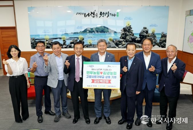 한국시사경제 한장선 객원기자 | 제주시 김녕농협과 충남 논산시 연무농협은 8월 12일 시장 집무실에서 고향사랑기부금 상호 기탁식을 갖고, 지역 간 상생협력을 다짐했다.