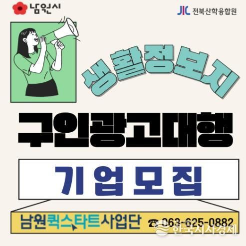시는 2025년부터 관내 중소기업을 대상으로 생활정보지를 활용한 구인광고를 기획하여‘남원교차로’뿐만 아니라 인접 도시의 생활정보지인‘전주교차로’와 ‘광주사랑방’에까지 구직자들이 쉽게 접할 수 있는 채용 정보를 정기적으로 제공하여 기업의 채용 홍보 부담을 경감시키고 구직자와의 매칭 효과를 높여 왔다.