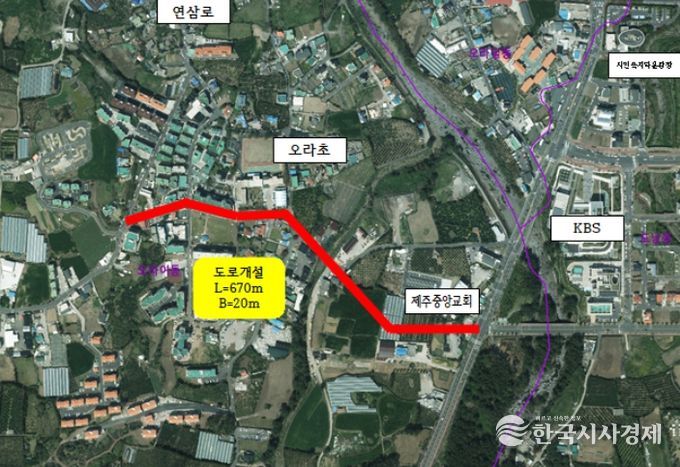 한국시사경제 한장선 객원기자 | 제주시는 오라초~오남로간(중로1-1-56호선) 도시계획도로 개설사업에 특별교부세 6억 원을 확보함에 따라 올해 12월 조기 준공할 계획이다.