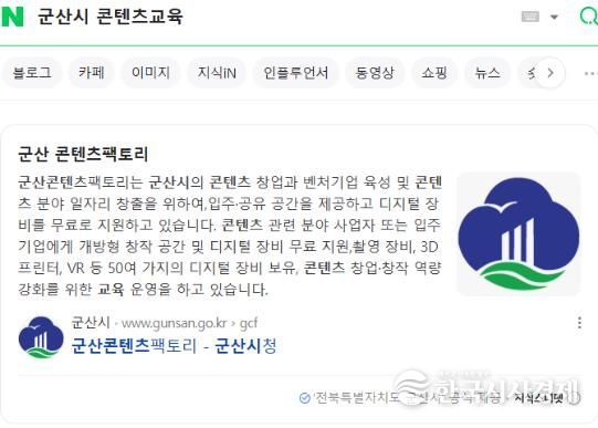 이를 통해 ▲군산 도심여행 ▲군산시 시민정보화 ▲군산시 콘텐츠팩토리와 같은 구체적인 키워드만 검색하면, 별도의 누리집 접속 없이 검색 결과 첫 화면에서 신청 방법 등 요약된 정보가 바로 뜬다.