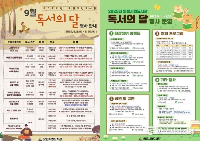 마동도서관은 9월 20일 어린이를 위한 인형극 '책을 먹는 여우' 공연을 개최하고, 영등도서관은 9월 26일 재즈 공연 '달빛 재즈 산책'을 통해 가을밤의 정취를 선사한다.