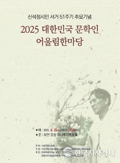 한국시사경제 전북취재본부 | 신석정기념사업회(이사장 윤석정)는 한국 현대시의 큰 별이자 민족시인 신석정 선생 서거 51주기를 맞아 오는 29일부터 30일까지 이틀거리일간 부안군 일원에서 2025 대한민국 문학인 어울림한마당을 개최한다고 밝혔다.