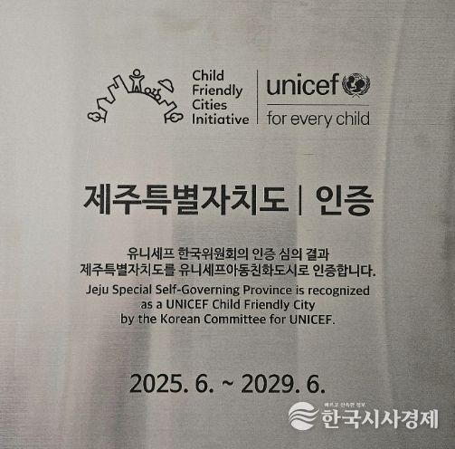 한국시사경제 한장선 객원기자 | 제주특별자치도가 유니세프 한국위원회로부터 아동친화도시(Child Friendly Cities) 인증을 획득했다. 부산, 대구, 광주, 세종에 이은 다섯 번째 광역지방자치단체이자, 도 단위 광역 지자체로는 전국 최초다.