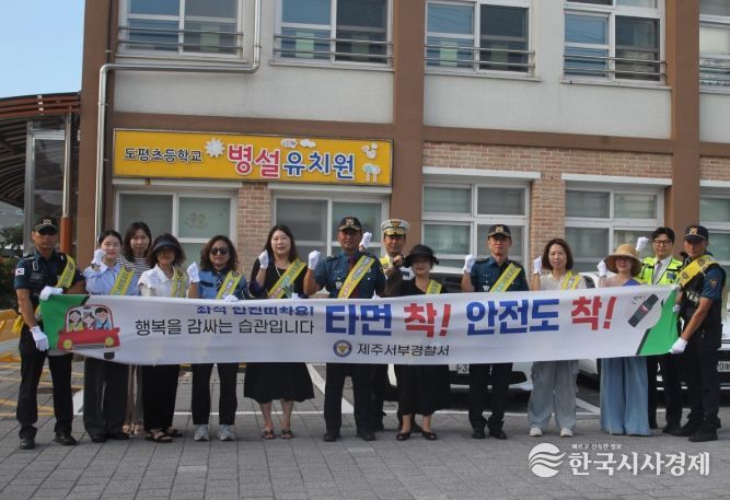 이번 캠페인은 2학기를 맞아 스쿨존 내 어린이들의 안전한 등하교 환경을 조성하기 위해 마련된 것으로 제주서부경찰서(교통관리계) 주관 아래 외도파출소, 제주도교육청, 도평초, 녹색학부모회가 함께 참여했다.