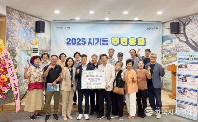 한국시사경제 전북취재본부 | 정읍시 시기동 주민자치회가 지난 27일 어려운 이웃을 위해 성금 100만원을 시기동 공유냉장고에 기탁하며 따뜻한 나눔을 실천했다.