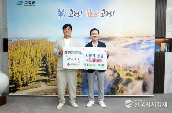 한국시사경제 한장선 객원기자 | ㈜ 대전사에서 8월 28일 고령군청을 방문하여 어려운 이웃들을 위해 사랑의 성금 500만원을 기탁했다.