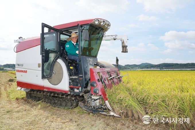 이번 수확하는 벼는 조생종인 해담쌀로 지난 4월 26일 모내기를 한 후 125일 만에 수확하는 것으로, 19ha 면적에서 재배되고 있다.