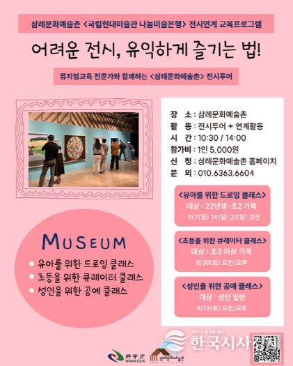 한국시사경제 전북취재본부 | 완주군 삼례문화예술촌이 ‘어려운 전시, 유익하게 즐기는 법’을 주제로 한 전시투어 프로그램을 30일부터 9월 21일까지 7회에 걸쳐 운영한다.