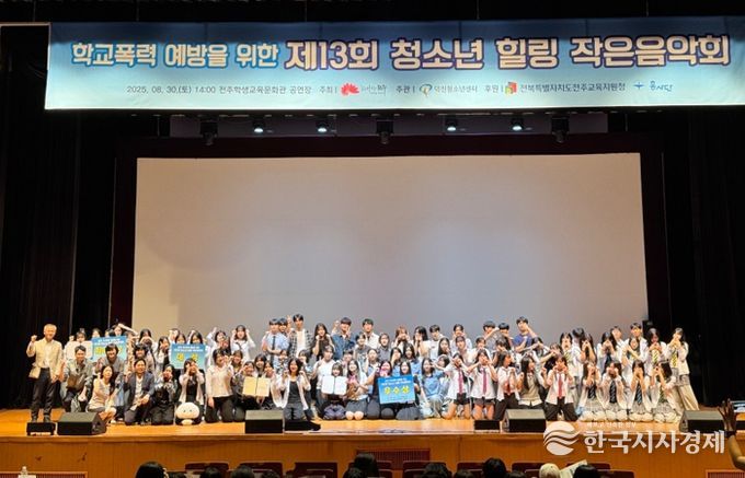 한국시사경제 전북취재본부 | 전주시와 덕진청소년센터는 30일 전주학생교육문화관에서 도내 청소년 등 시민 500여 명이 참석한 가운데 ‘학교폭력 예방을 위한 제13회 청소년 힐링 작은음악회’를 성황리에 개최했다.