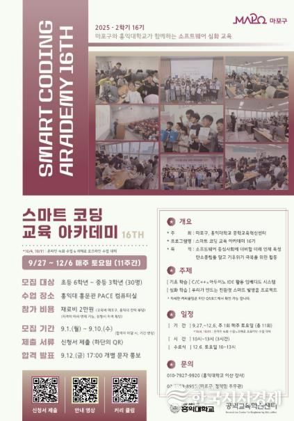 한국시사경제 한장선 객원기자 | 마포구는 청소년의 창의적 문제 해결 능력과 디지털 역량 강화를 위한 '스마트 코딩 교육 아카데미'를 오는 9월 27일부터 12월 6일까지 총 11주간 진행한다.