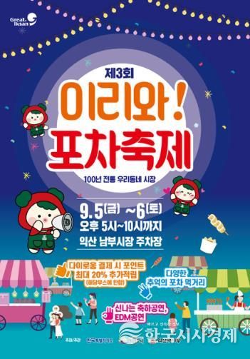 한국시사경제 전북취재본부 | 전통시장과 포차 감성이 어우러진 세 번째 '이리와 포차 축제'가 한층 풍성한 먹거리와 공연으로 돌아온다.