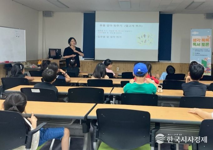 한국시사경제 한장선 객원기자 | 제주도교육청 서귀포도서관은 오는 27일까지 매주 토요일 오후 2시부터 4시까지 총 5회에 걸쳐 도서관 독서활동실에서 초등학교 1~3학년 어린이 20명을 대상으로 ‘생각 톡톡 독서 토론’ 프로그램을 운영한다.