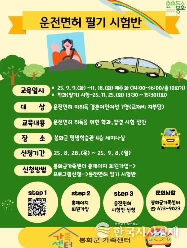 한국시사경제 한장선 객원기자 | 봉화군가족센터가 이달부터 결혼이민여성 7명을 대상으로 ‘운전면허 필기 시험반’ 프로그램을 운영한다.