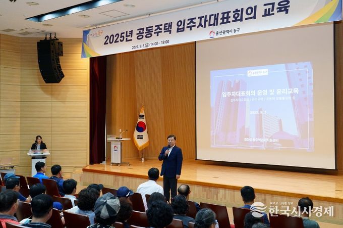한국시사경제 울산취재본부 | 울산 동구는 9월 5일 오후 2시 동구청 5층 중강당에서 의무 관리 대상 공동주택 단지의 입주자대표회의 구성원과 관리사무소장 등 관계자 140여 명이 참석한 가운데 공동주택 입주자대표회의 교육을 했다.