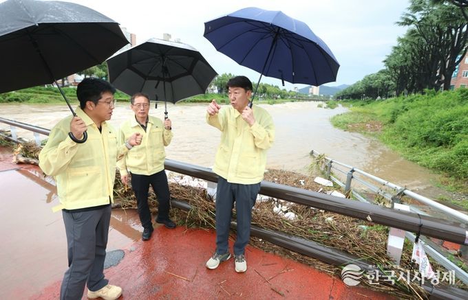 이와 관련, 시는 이날 오전 10시 기준 180.3mm 폭우가 주말 새 쏟아짐에 따라 이를 실시간으로 대응하기 위해 재난안전대책본부를 운영하고 있다. 시는 폭우 피해를 최소화하기 위해 재난문자 발송과 하천경보 발송, 세월교 및 징점다리 사전통제, 하천변산책로 통제, 언더패스 통제 등 조치를 완료했다. 하수역류와 배수불량, 맨홀역류, 도로파손 등 유관기관과 정보를 공유하고 실시간으로 대응하고 있다.