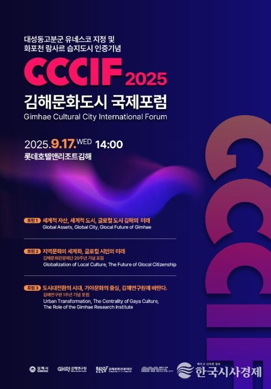한국시사경제 윤경수 기자 | (재)김해문화관광재단 문화도시센터와 김해연구원에서는 오는 17일 롯데호텔앤리조트 김해에서 세계적 도시, 세계적 시민, 글로컬 도시 김해의 미래라는 주제로 김해문화도시 국제포럼을 개최한다.