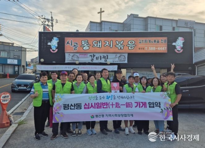 한국시사경제 윤경수 기자 | 평산동지역사회보장협의체(공동위원장 이상진・김상걸)는 지난 5일 ‘시골통돼지볶음(대표 이휘국)’을 '십시일반(十匙一飯) 가게' 제58호점으로 지정하고, ‘이웃愛 행복나눔’ 현판을 전달했다.